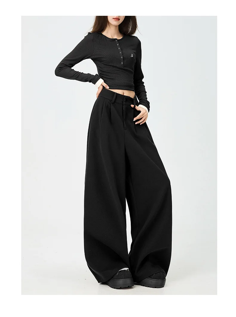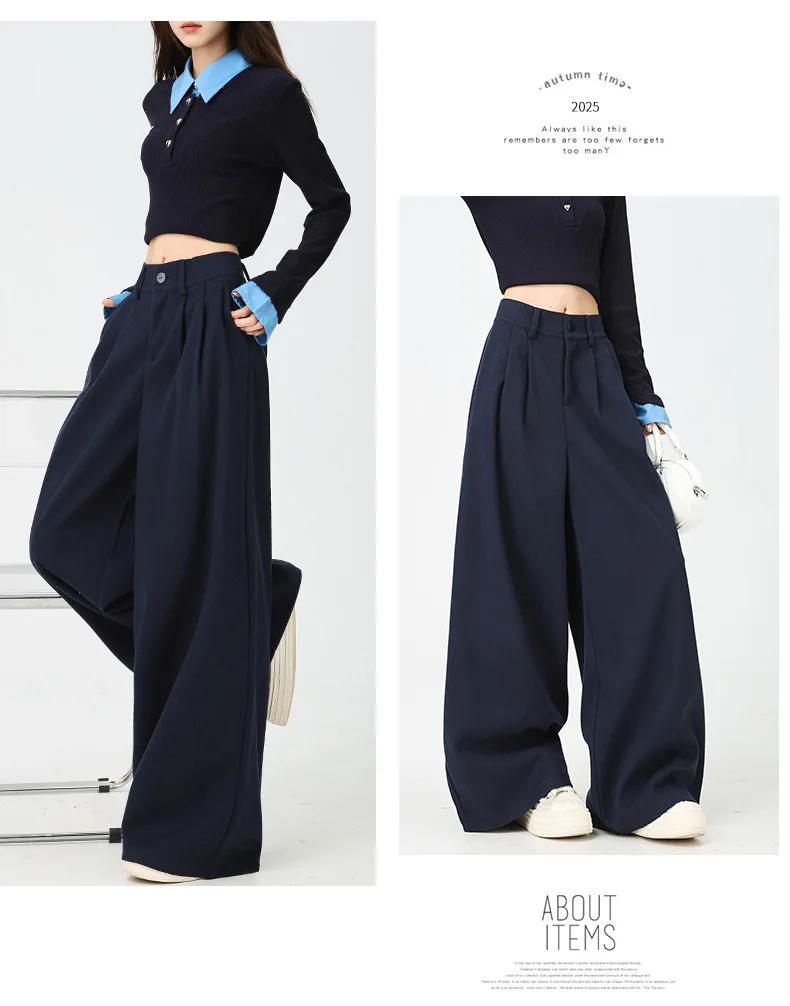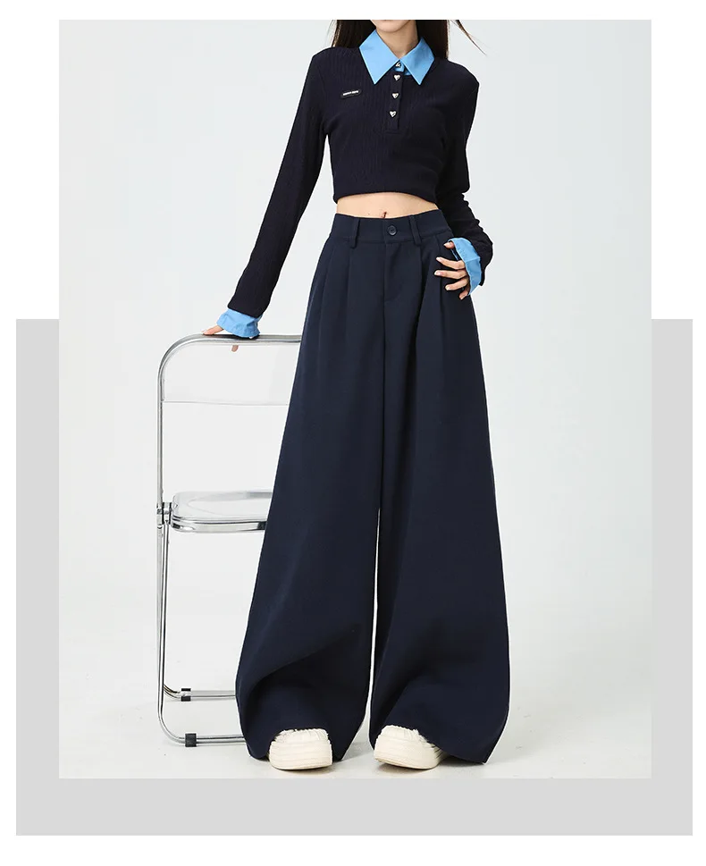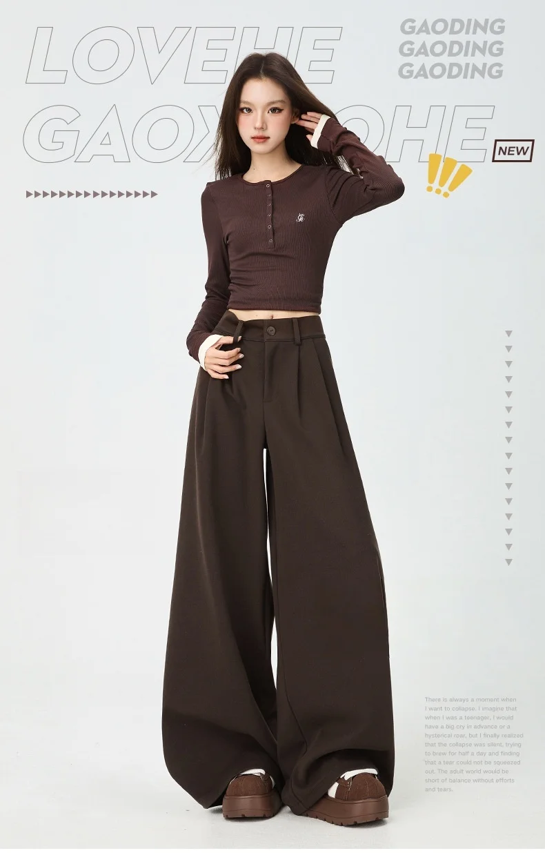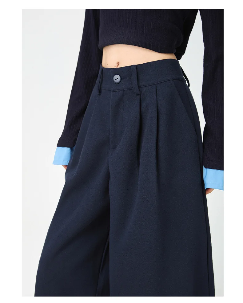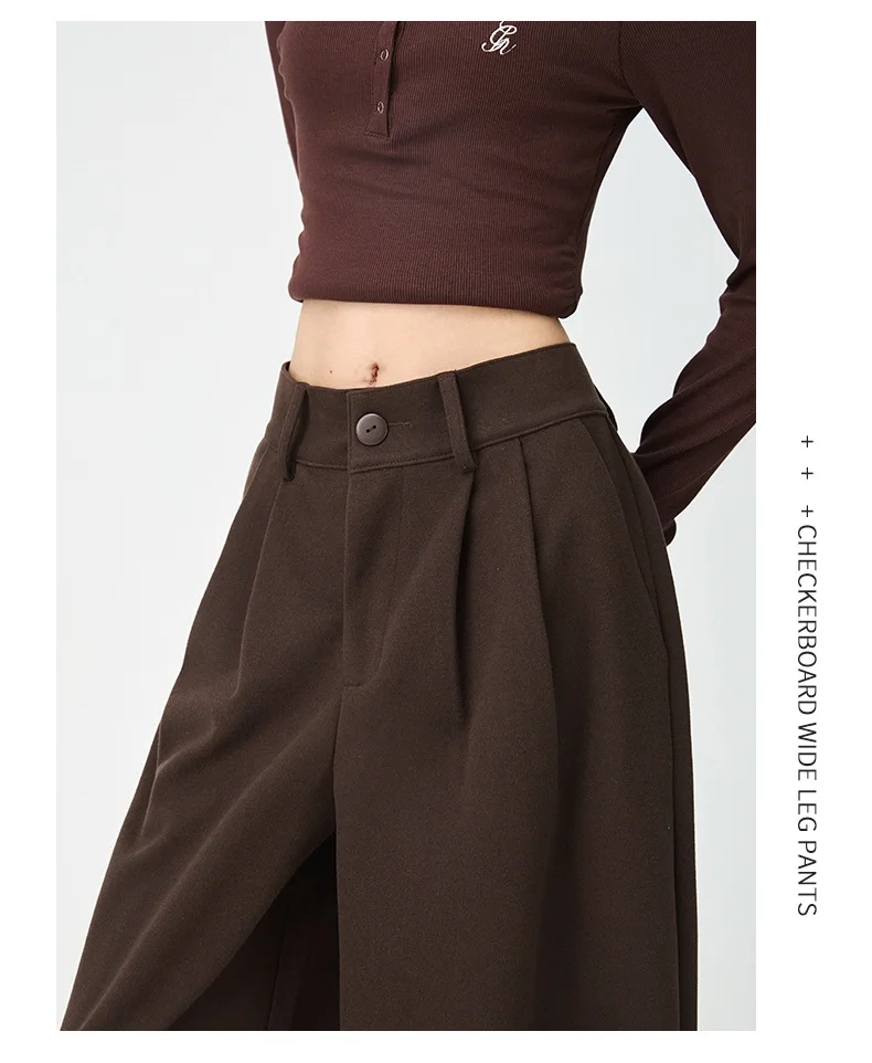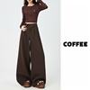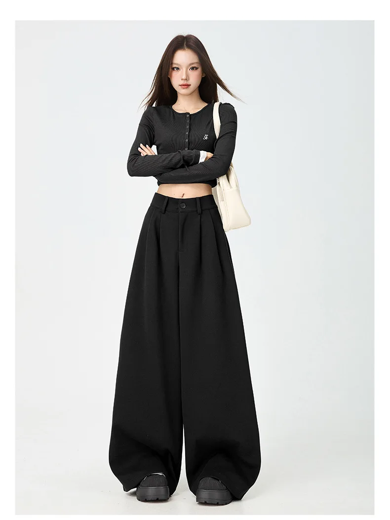 Woolen Trousers Women Autumn Winter Loose Fit High-Waisted Wide-Leg Winter Vintage Casual Trousers Warm Soft