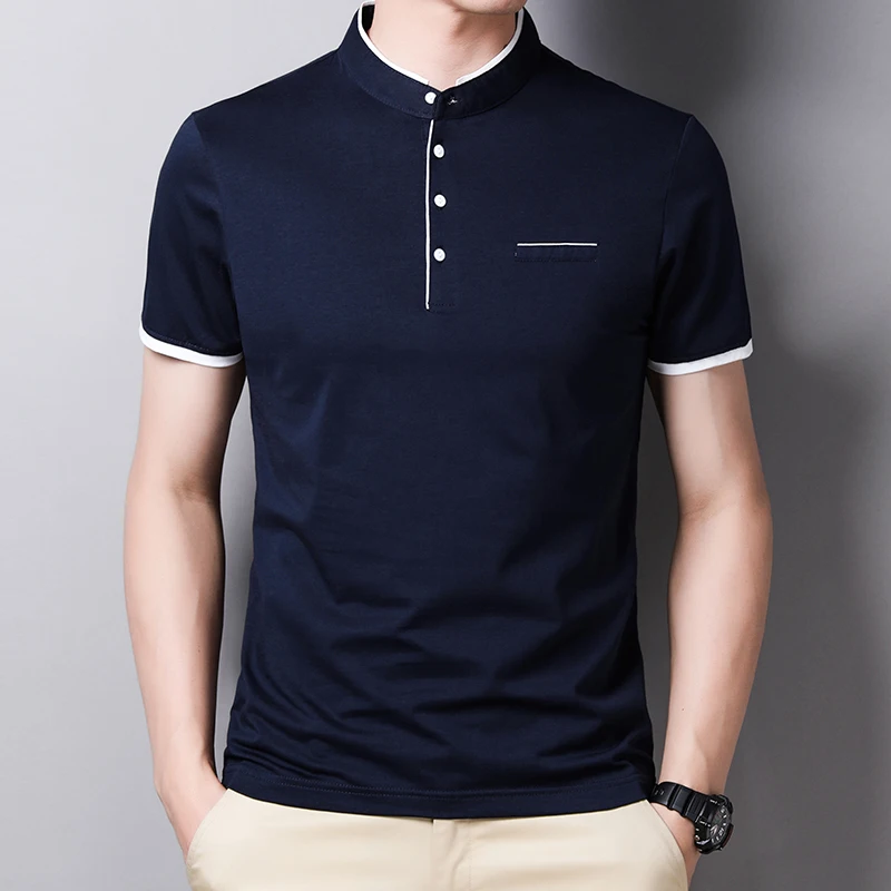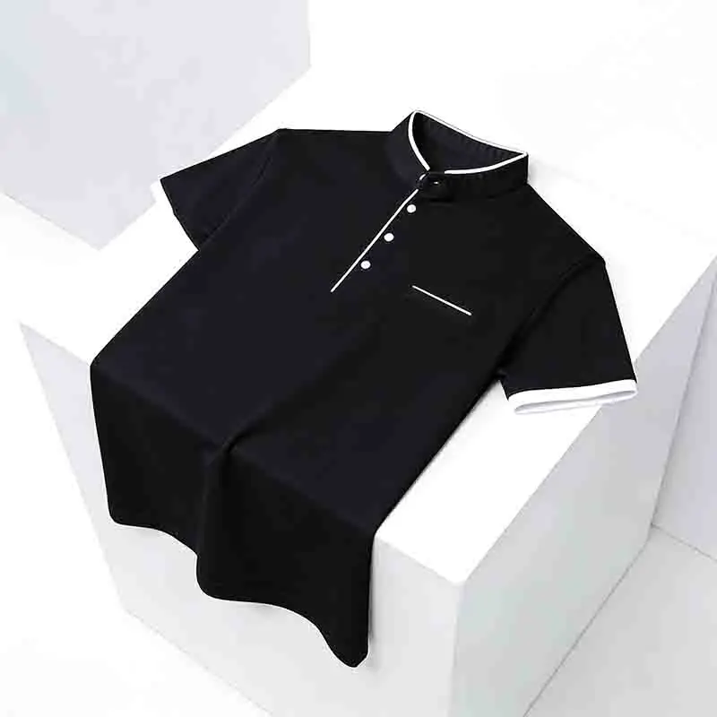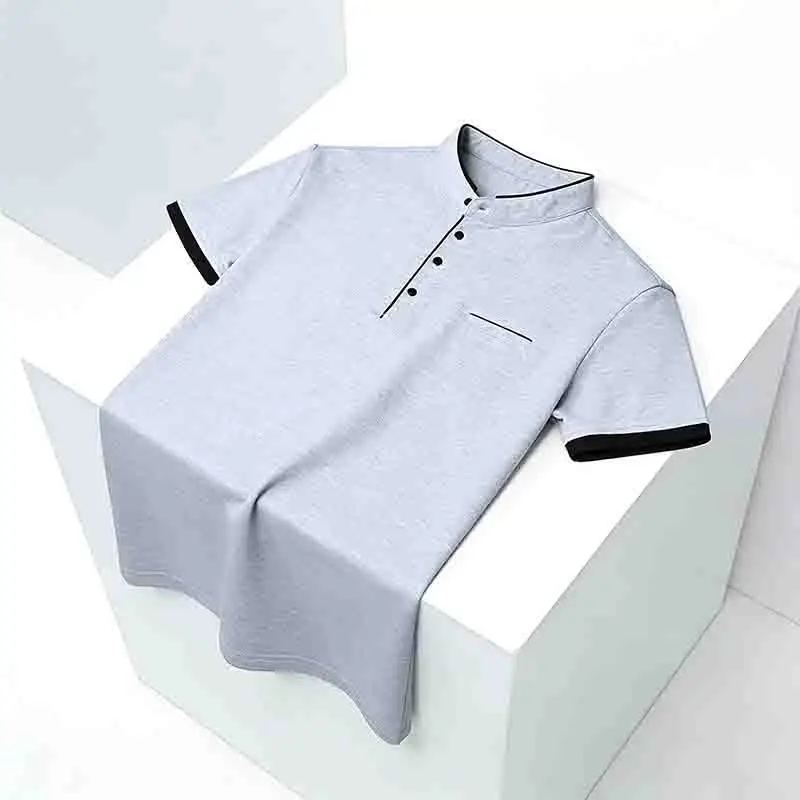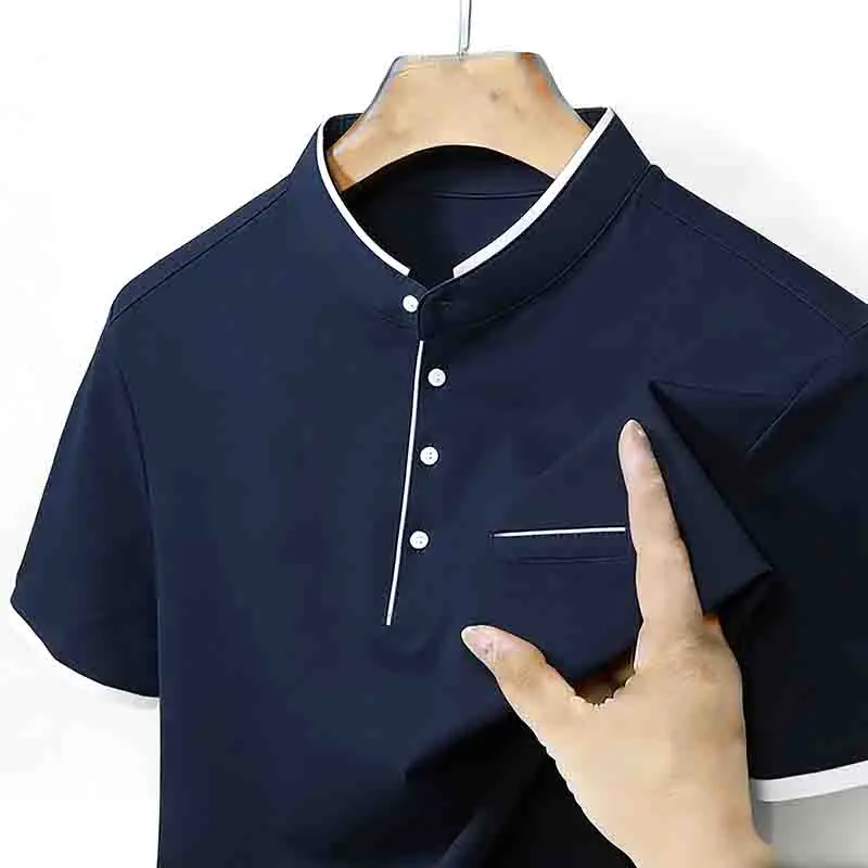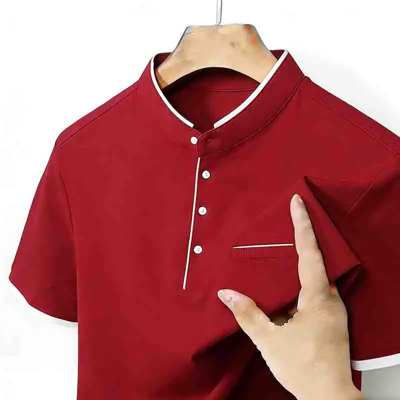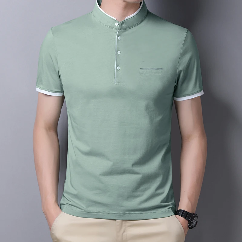 Wrinkle-resistant Men’s Light Green Stand Collar Short Sleeve Polo Shirt Easy Care Top for Travel & Work