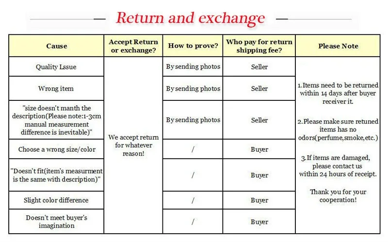 If for any reason you would like to exchange your product, perhaps for a different size in clothing. You must contact us first and we will guide you through the steps.