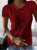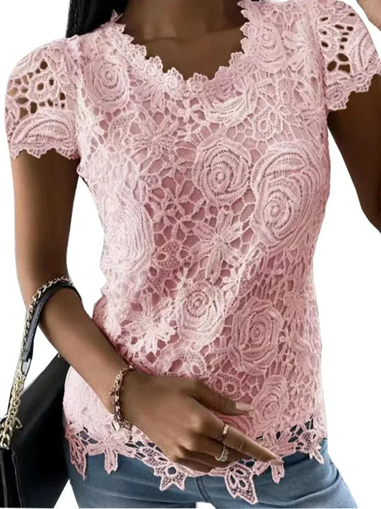 Y2k Vintage Lace Blouse Women T-Shirts Sexy O-Neck Short Sleeve Patchwork Elegant Fashion Clothes Streetwear Casual Solid Tops