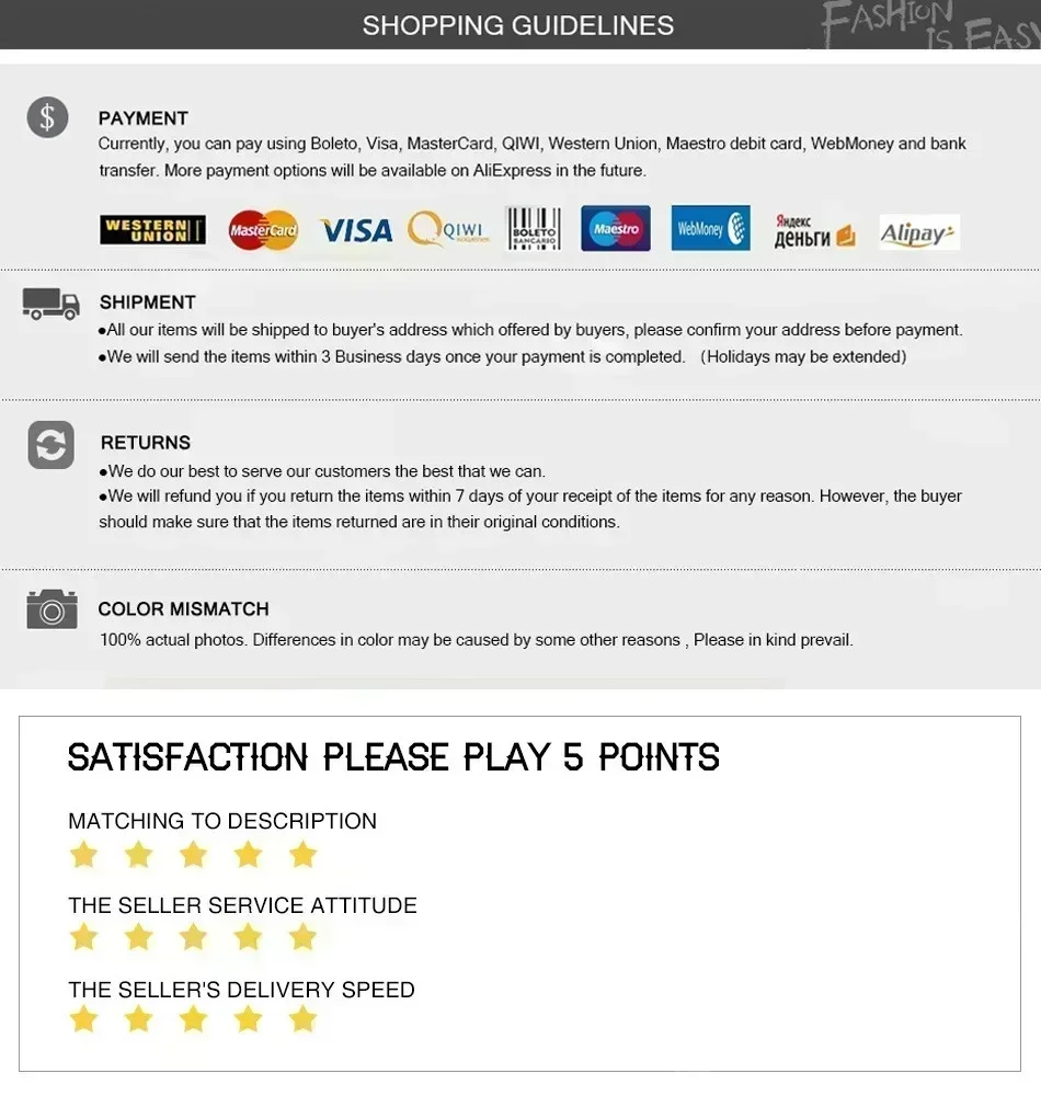 It's okay to change your mind! You can send your order back for a full refund, we've got you covered with our full Buyer protection.