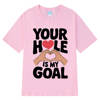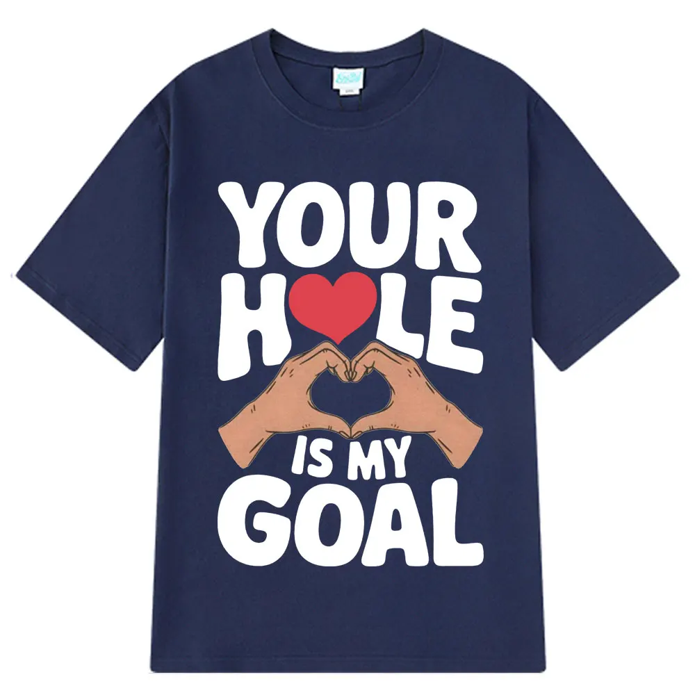 Your Hole Is My Goal Funny Simple T-shirt Meme Man Woman Loose Fashion T-shirts Summer Cotton Unisex Hip Hop Tee Shirt Oversize