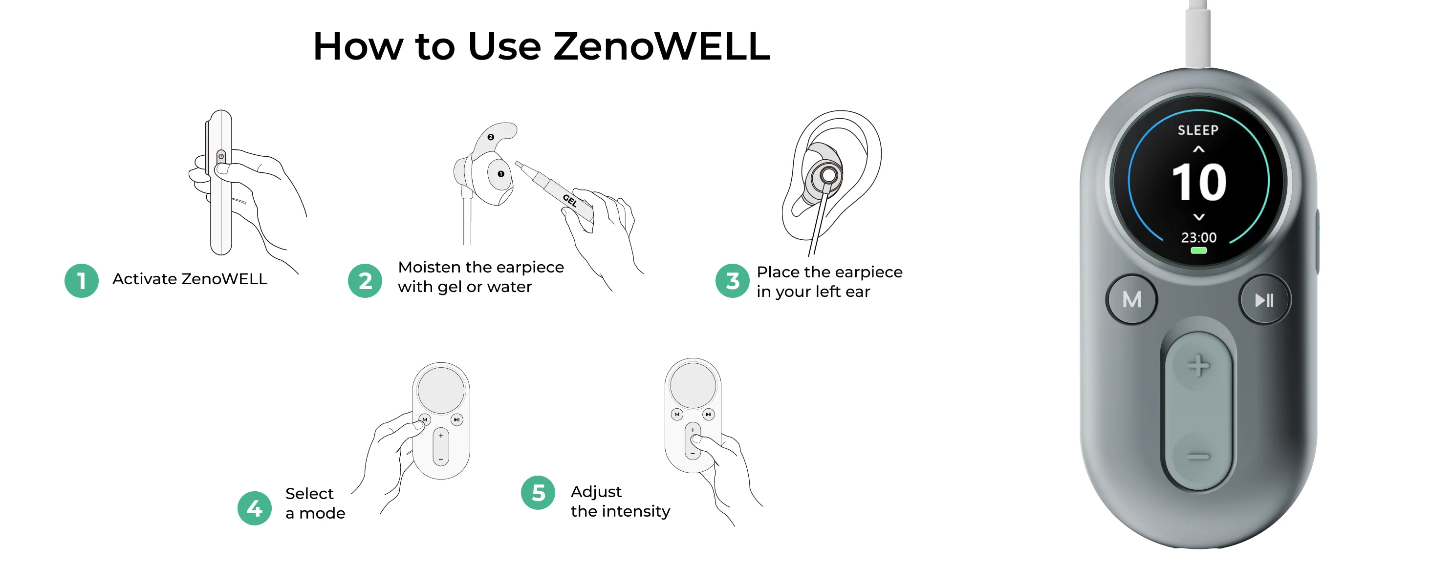 ZenoWell Luna Vagus Nerve Stimulator to Sleep Better, Deep Calm, Meditation and Drug-free Intervention for Headache